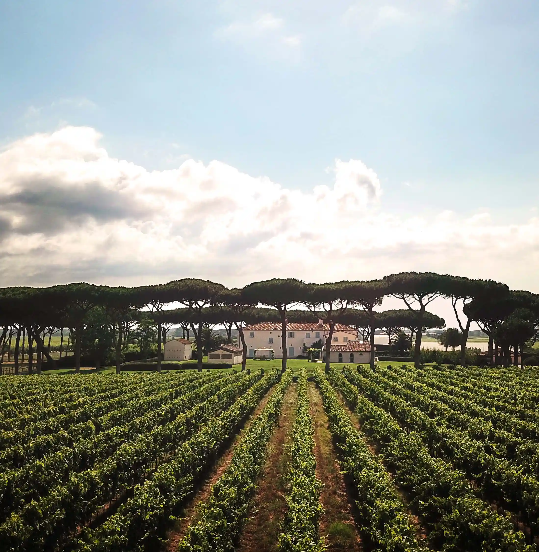 The estate covers an area of about 320 hectares (790 acres) planted with vines, set in a beautiful plain encircled by rolling hillsides known as the “Bolgheri Amphitheatre” due to its particular shape. The vineyards are planted to Cabernet Sauvignon, Merlot, Syrah, Cabernet Franc, Petit Verdot and Vermentino grapes.